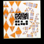 - Edward Zajec and Matjaz H meljak, 516 Kensington Rd. Syracuse, NY 13210; Logic Moments in Color LMC 3002086. 1976 printer output and colorplate collage, 17″ x 17″; University of Trieste, Italy; CDC 6200, fast printer, CalComp 563 plotter using FORTRAN.?