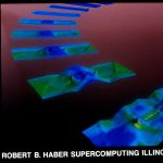5. Robert Haber, National Center for Supercomputing Applications, 140 Computing Applications Building, 605 East Springfield Ave., Champaign, IL 61820, (217) 244-6103. Stress Waves in Dynami.c Fracture. Visualization of a Cray XMP simulation of dynamic crack growth at I km/ sec. The stress wave patterns near the crack tips in a rectangular plate are revealed by using color to represent strain energy density and vertical position to represent kinetic energy density. Hae Sung Lee, Hyun Koh and Robert Haber using Eulerian -Lagrangian moving finite element code. Ran on a Cray XMP, VAXstation II, Raster Technologies model One/380, and Matrix Instruments color graphic recorder.?