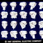 10. William Lorensen, General Electric Corporate Research and Development, P.O. Box 8, Bldg KW/D20IA, Schenectedy, NY 12301, (518) 387-6744. Rotating Skull. 20 views of the bone surface model created from 93 CT slices. The surface model contains over 500,000 triangles. By W. Lorensen and H. Cline using marching cubes surface construction program on a Lexidata 3400, Matrix 4007 camera and a VAX 11/782.?