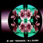 44. Mary Jane Glenn, Glenn Graphics, P.O. Box 1254, Ronkonkoma, NY 11779, (516) 7371256. Radiance. Digitized photo image of natural form, custommade palette with opaque and tint brushes were used. Detail was selected from image, painted, enlarged, repeated and manipulated to create a mandala form. Used CGL images II+ paint system.?