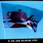 53. Jane Wilhelms, University of California, Santa Cruz, Computer and Information Sciences, Applied Sciences Building, Santa Cruz, CA 95064, (408) 429-2990. Untitled. The flag is modeled using finite element analysis as masses connected by springs and acted upon by an external wind force. By Matt Moore using the University of Toronto 3D Rendering Package, and U CSC modeling and animation software.?
