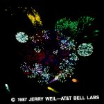 55. Jerry Weil, AT&T Bell Laboratories, 600 Mountain A venue, Murray Hill, NJ 07974, (201) 582-7833. 4th of July. Single frame from animation of fireworks. By Jerry Weil with inhouse software for animating fireworks running on a VAX 11 /750 and Adage RDS3000.?
