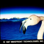 59. Larry Schnur, Wavefront Technologies, 530 East Montecito Street, Santa Barbara, CA 93103, (805) 962-8117. Flamingo. Three dimensional image modeled on Iris 3130. Textures mapped onto 3D shapes using Wavefront Image software. Design and construction: John Grower. Textures: Bruce Jones.?