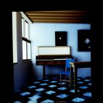 67. John R. Wallace, Cornell University Prog. of Computer Graphics, 120 Rand Hall, Cornell University, Ithaca, NY 148535501, (607) 255-6715. Glossy Floor, after Vermeer. Illumination calculated ming a hybrid of radiosity and distributed ray tracing. By John R. Wallace using a VAX 8700 and displaying at 1280 X 1024.?