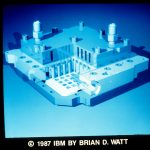 70. Brian D. Watt, IBM Corporation, D/Cl3 B/703-2, P.O. Box 390, Poughkeepsie, NY 12602, (914) 435-1617. TCM. A sectioned view of an IBM Thermal Conduction Module (TCM) for the system packaging of the IBM 3090. By Brian D. Watt using an in-house solid modeling system with ray tracing software developed jointly with RPI-CICG. Computed as a 1024 x 1024 x 24 image on an IBM 3081 and displayed on an IBM 5080.?