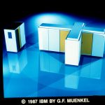 71. G. F. Muenkel, IBM Corporation, D/803 8/701, P.O. Box 390, Poughkeepsie, NY 12602, (9 I 4) 435-1036. 3090. Model generated during product development phase for industrial design appearance study of IBM 3090200 machine. By G. F. Muenkel using an in-house solid modeling system with ray tracing software developed jointly with RPICICG. Computer as a 1024 x 1024 x 24 image on an IBM 3081 and displayed on an IBM 5080.?