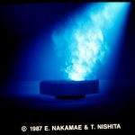 74. Eihachiro Nakamae, Saijo, Higashihiroshima, Hiroshima 724, Japan 0824-22-7111. Smoke in the shaft of light. A shading model for atmospheric scattering considering particle density is used to make the image. By E. Nakame (Hiroshima University) and T. Nishita(Fukuyama University) using TOSBAC DS-600 computer and GRAPHICA M508 display.?