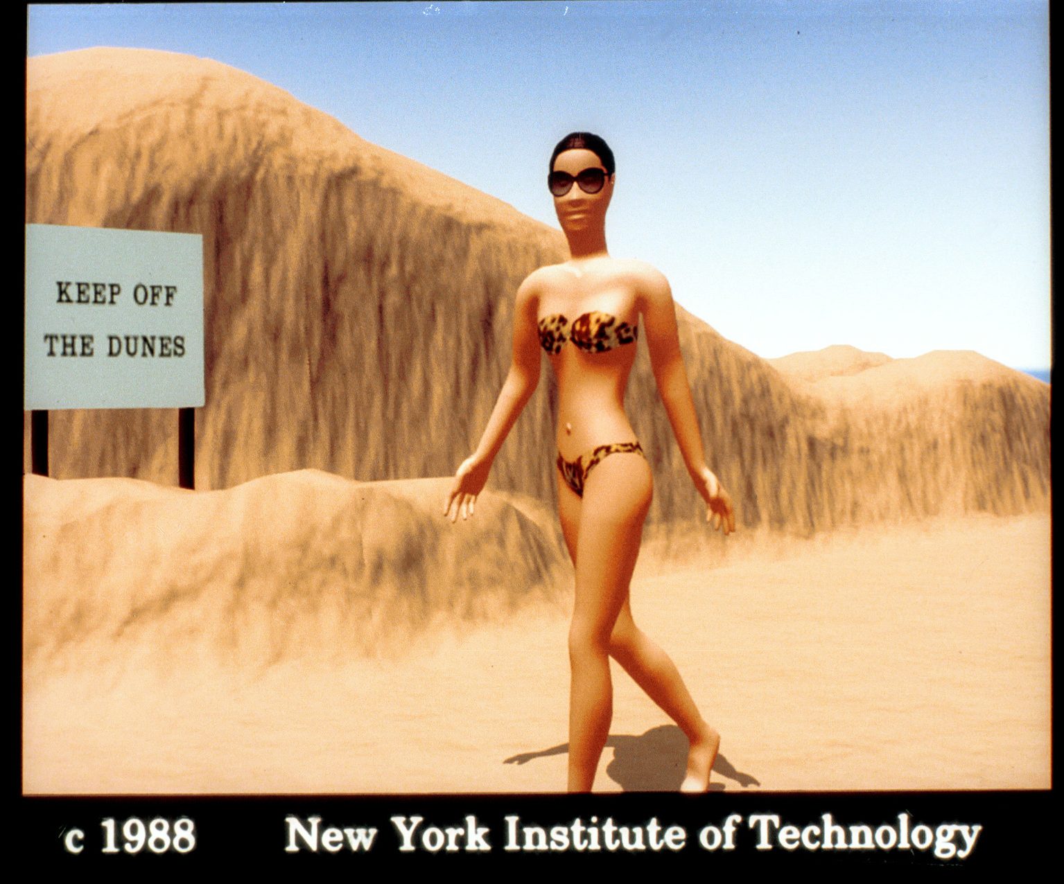 - Girl on the Beach by Dick Lundin and Susan Van Baerle using polygon rendering software running on the VAX 1 I/ 780. Frame from an animated sequence demonstrating flexible modeling software at 1024 resolution. Contact: Dick Lundin, New York lnstitute of Technology,P.O. Box 170, Old Westbury, NY 11568, (516) 686-7644.?