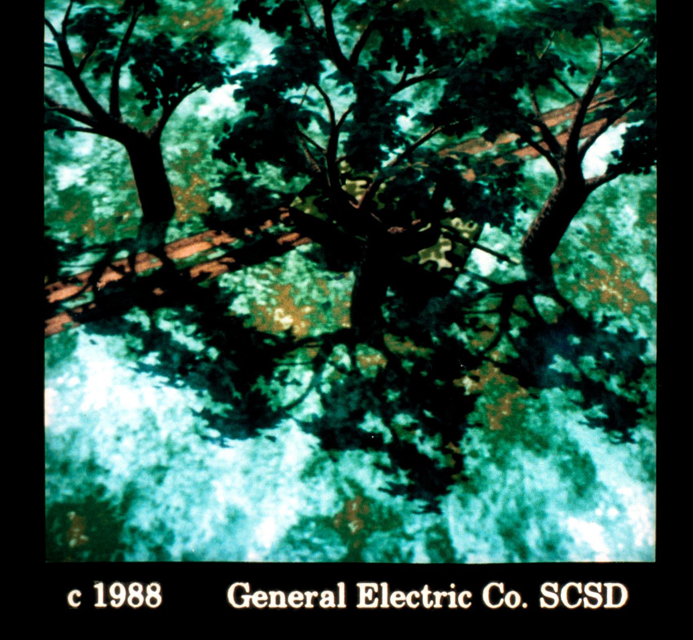 - Ambush by Rosalie Bibona, Richard Fadden and Eduardo Benitez. Edge scan area processor software simulation. The “Static Scene Generator” is a software simulation programmed in C language. The algorithms are hardware simulations of General Electric Company’s (SCSD) advanced product line of real time flight simulators. Software simulation runs on multiple platforms. Apollo DN3000 with an AT & T Targa 24 graphics board, or Sun 3/ 280 with an IV AS, or a VAX 11 / 780 with a Gould I P8500 DeAnza display. This image depicts a camouflage tank hiding among trees. The foliage was digitized by a 78/ 99 Eikonix digitizer ( 110 lin/ inch). The texture mapping techniques are integrated into General Electric Company’s (SCSD) computer image generator database workstation. Contact: Rosalie Bibona, General Electric Co., 1800 Volusia Ave.Room 4336, Daytona Beach, FL 32015, (904) 239-2024.