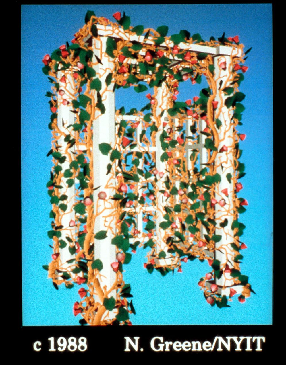 - Test of Voxel-Based Growth Program by Ned Greene. Software used was “gaudi”and NYIT animation system on a VAX 11 / 780 with lkonos frame buffers. This is a frame from “Test of Yoxel-Based Growth Program” from SIGGRAPH ’87 film and video show. Growth program produced the model of the vines. Contact: Ned Greene, NYIT Computer Graphics Lab, P.O. Box 170, Old Westbury, NY I 1568,(516) 686-7644.?