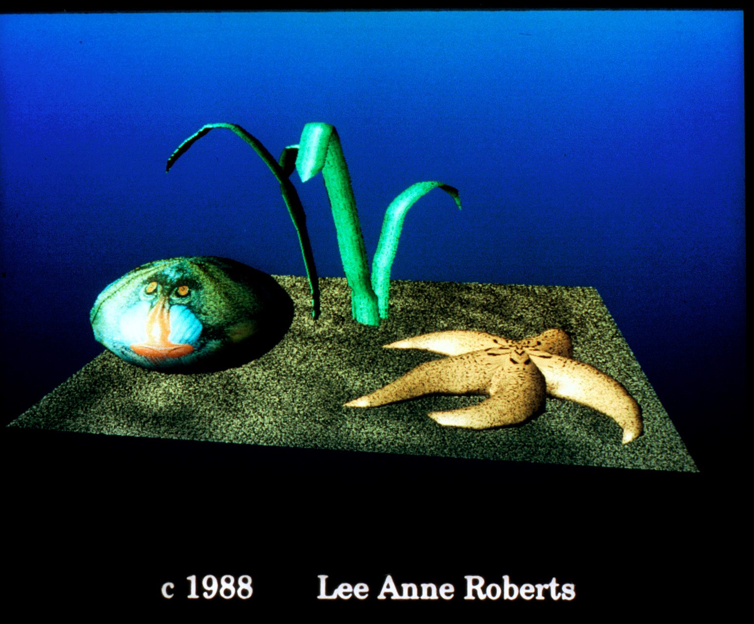 - Mandrill on the Quarter Shell by Lee Anne Roberts with Silicon Graphics Iris C Library generated on a Silicon Graphics Iris. An underwater scene. The sand, seaweed and starfish are texture mapped with white noise. The sea urchin is texture mapped with a picture of a mandrill. Contact: LeeAnne Roberts, Air Force Institute of Technology, 4987 Kins gate Ct., Dayton, 0 H 4543 I, (53 I )-252-276 I.?
