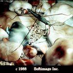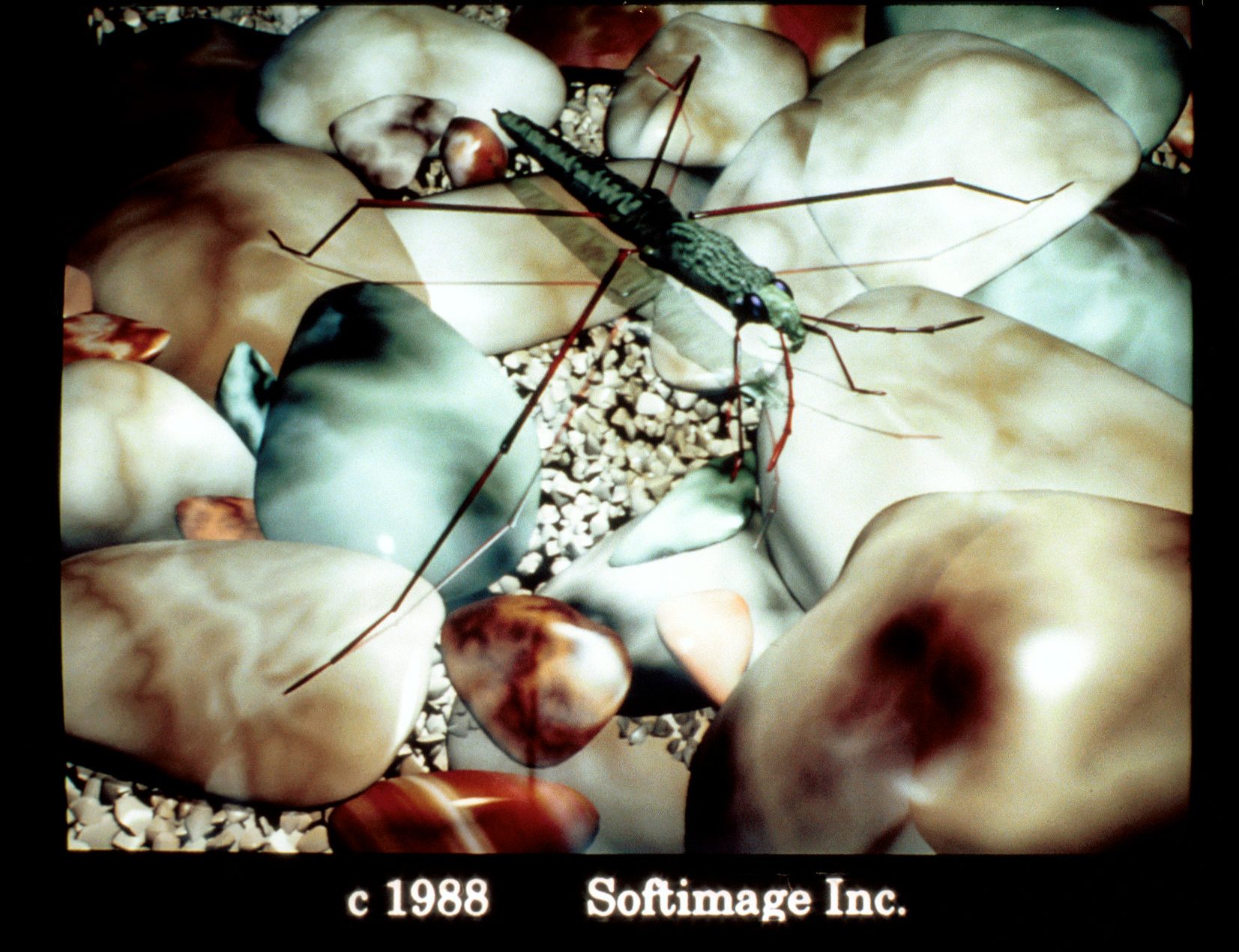 - Water Strider by Daniel Langlois with support of Laurent Lauzon, Richard Mercille and Char Davies. This is a still from the short film “Water Strider.” It consists of 1560 individual grains of sand, 29 rocks and the water strider of 82 articulated elements rendered using the equivalent of 50,000 polygons and 52 different procedered solid textures. The scene is lit by three light sources and a subtle surface of translucent water is reflecting the water strider and the sky over the scene. All these elements were created using the SOFTIM AGE 4d graphic environment software on the Silicon Graphics and Pixar. Contact: Daniel Langlois, Softimage. Inc, 3510 Blvd. St. Laurent, Suite 214, Montreal, Quebec, Canada H2X 2V2, (514) 845-1636.?