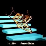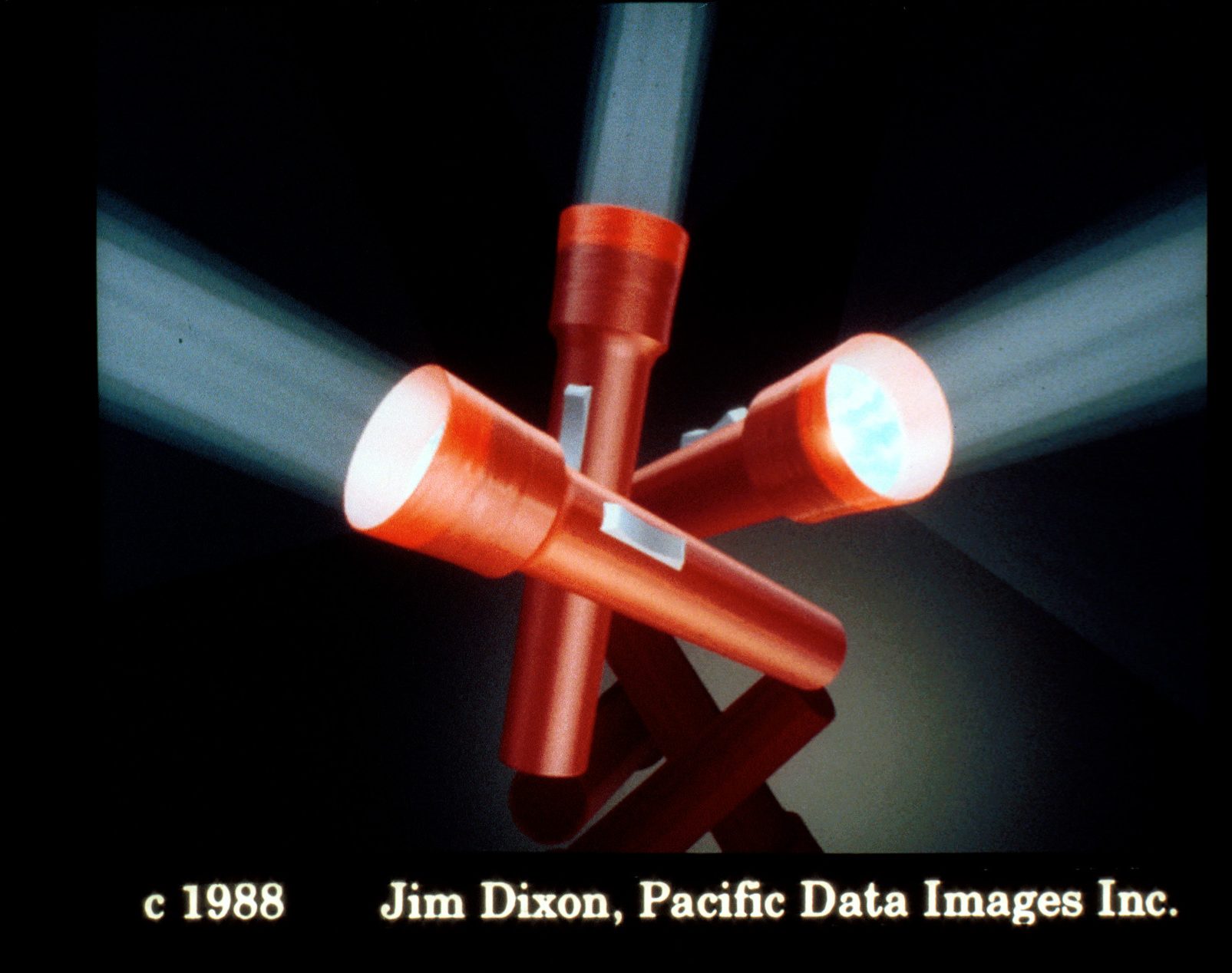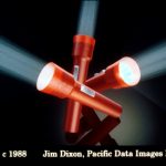 - Ikebana by Jim Dixon using PD! proprietary animation system on a Ridge 3200 computer with Raster Tech One/25 frame buffer and a Dunn camera. The image was created using POi’s modeling and rendering software. Reflection, bump and transparency mapping were used on 8000 polygons which rendered at 512×512 pixels in 15 minutes on a Ridge 3200. The light beams were modeled and “added” instead of “matted” to give a luminous quality. Contact: Jim Dixon, Pacific Data Images, 1111 Karlstad Dr., Sunnyvale, CA 94089, (408)745-6755.?