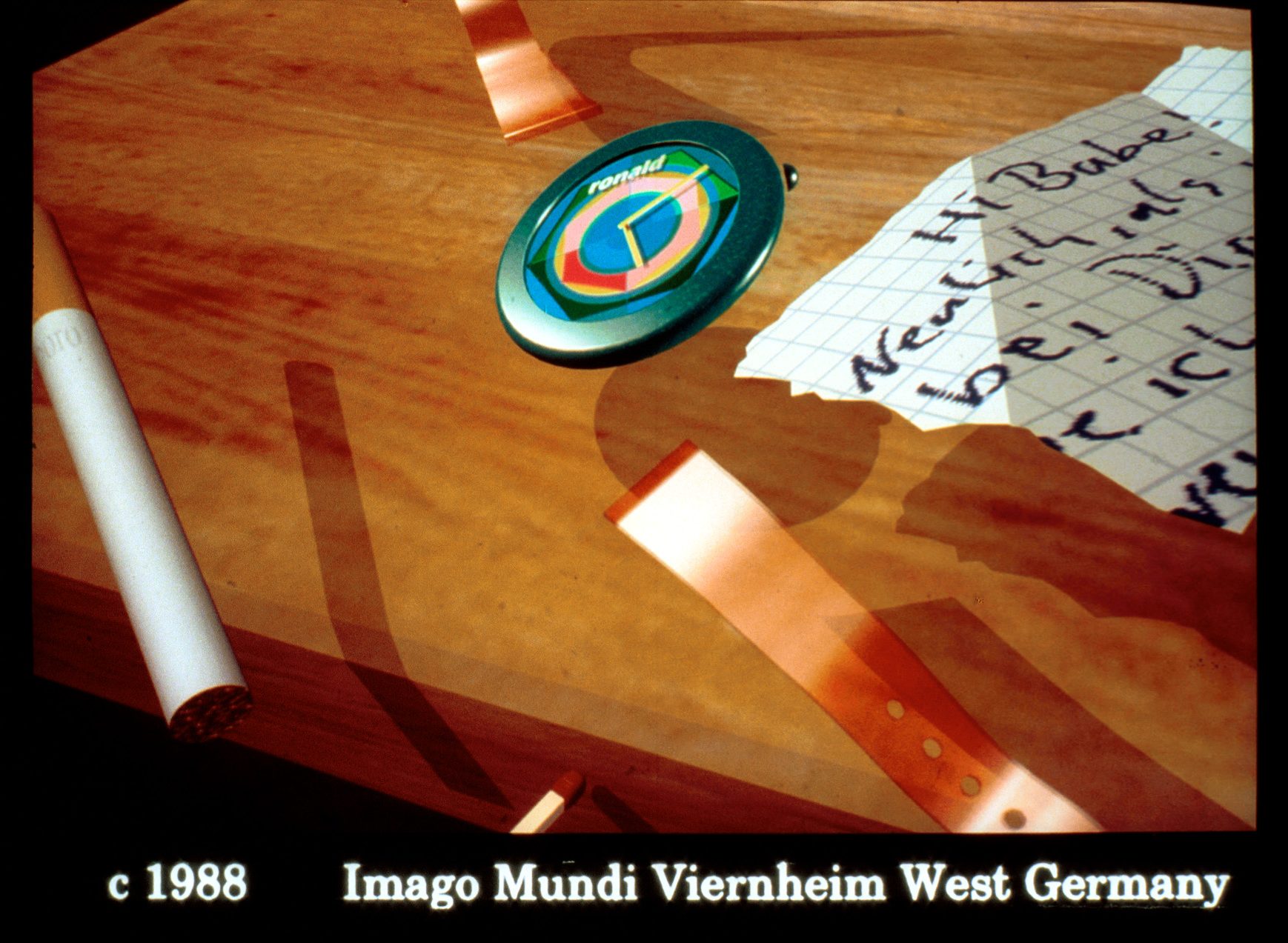 - The Letter by Ronald Stephan with Cubicomp Picture maker on the IBM AT, PM-framebuffer QCR-Z. Another study in composite image as a special detail appears, hand lettering for texture mapping. Contact: Walter Hertig, IMAGO MUNDI, Werner-Heisenberg-Str. 8-40, D6806, Yiernheim, West Germany, 06204/2040.?
