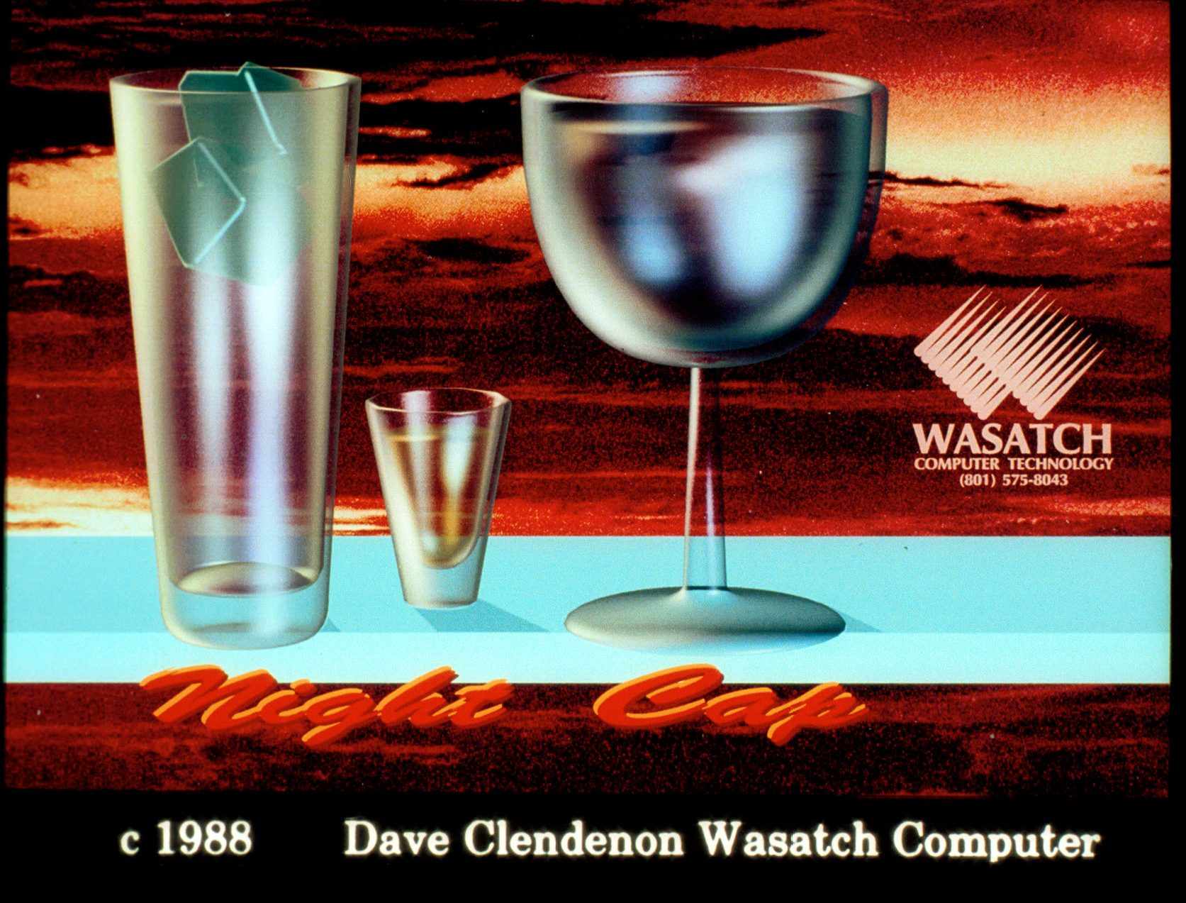 - Night Cap by Dave Clendenon using the Wasatch PC I 024 illustration system/ Wasatch PC3D system/ Wasatch PC4096 presentation graphics/Wasatch scanner software. This image was created using the new scanner software and the new 3 D rendering program with multiple 30 images and the presentation layed on top. Contact: Dave Clendenon, Wasatch Computer Tech/ Wasatch Imagination Center. 123 East 200 South, Salt Lake City, UT 84111, (801) 575-8043.?