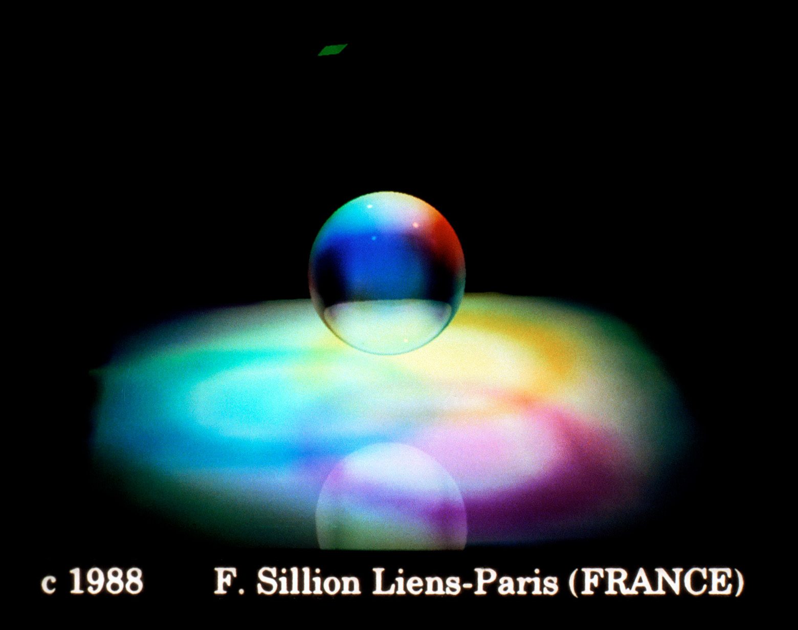 - Soap Bubble by F. Sillion using the light interreflection calculation system on a Ridge computer. The calculation system combines ray-tracing and radiosity and allows arbitrary shapes to specularly reflect or refract light. Contact: Francois Sillion, Liens. 45 rue D’ULM, 75005 Paris, France, 43 26 59 96.?