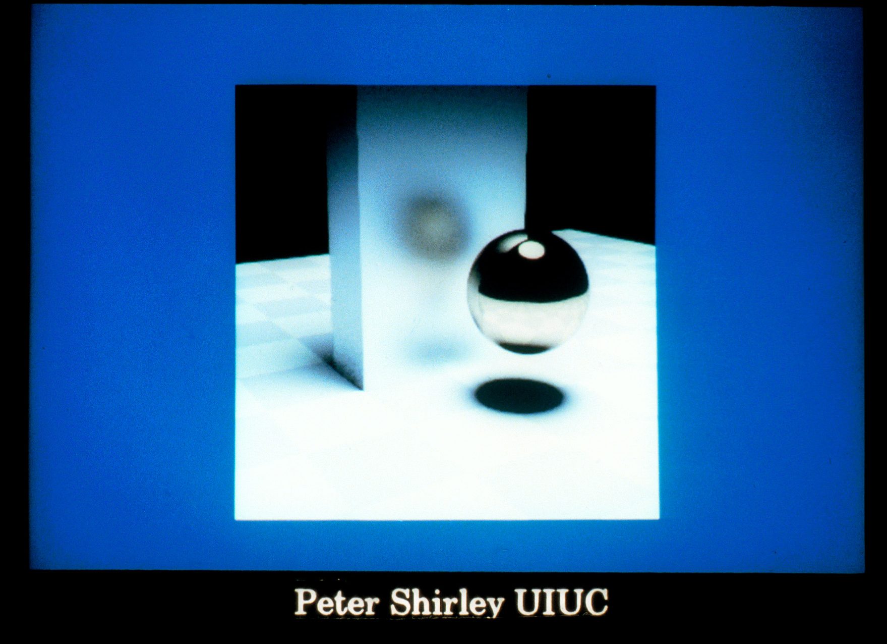 - Untitled by Peter Shirley using VAX PATH 11 /750 ray and tracer Pixar on image the computer. This image of a reflective ball and glossy block rendered using PATH tracing algorithm. Contact: Allan Tuchman, Center for Supercomputing Research and Development, 305 Peter Talbot Lab, 104 -South Wright, Urbana. IL 61801, (217) 244-0048.?