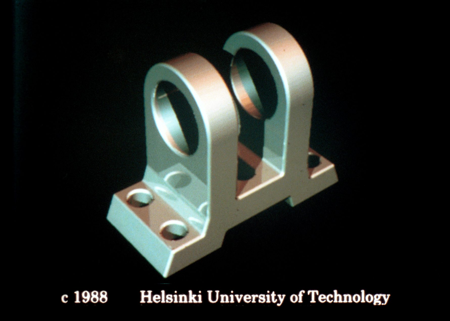 - Holder by Lasse Holmstrom. Timo Laakko and Pann Rekala using GWB BR modeler, EXTRACE ray tracer and EXCELL spatial index on a Sun 3-260 with an 8 bit frame buffer. The model was built of planar and curved surface elements under a boundary representation modeler, Most of the edges are filleted. Ray tracing was accelerated by a 1 spatial subdivision method. Contact: Pann Rekala, Helsinki University of Technology, Laboratory of Information Processing Science, Otukaari I, S F-02150 Espoo Finland, (358)0-451-2158.?