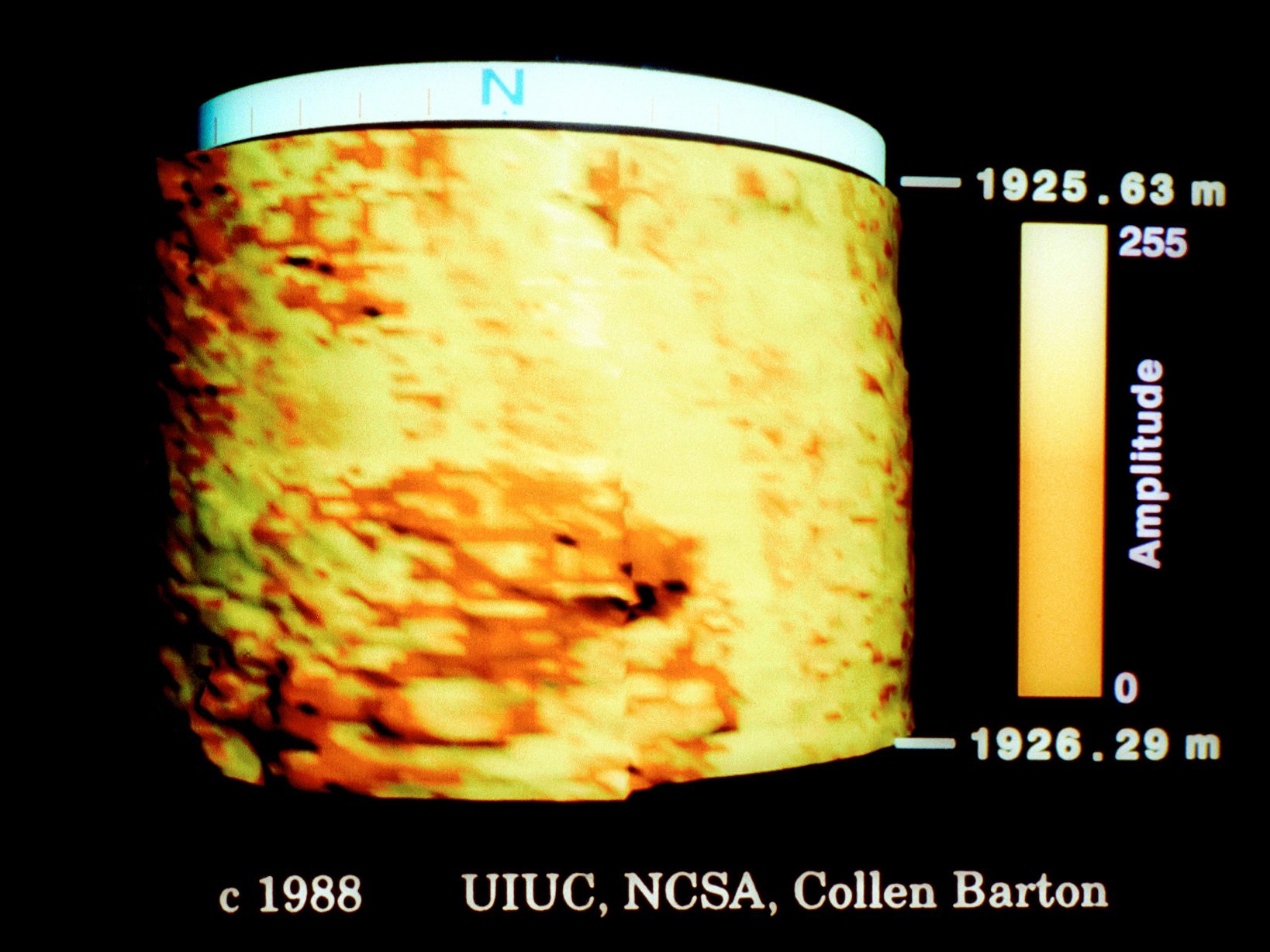 - Cajon Pass Scientific Drilling Project by Jeff Yost using Wavefront Technologies in-house cylindrical surface mapping software on an Alliant FX-8 and Silicon Graphics IRIS 3130. Data recorded in the Cajon Pass Well drilled to investigate the stresses in the earth’s crust in the vicinity of the San Andreas Fault. Contact: Jeff Yost, National Center for Supercomputing Applications, I 52 Computing Applications Bldg., 605 E. Springfield Ave., Champaign, IL 61820, (217) 244-6830.