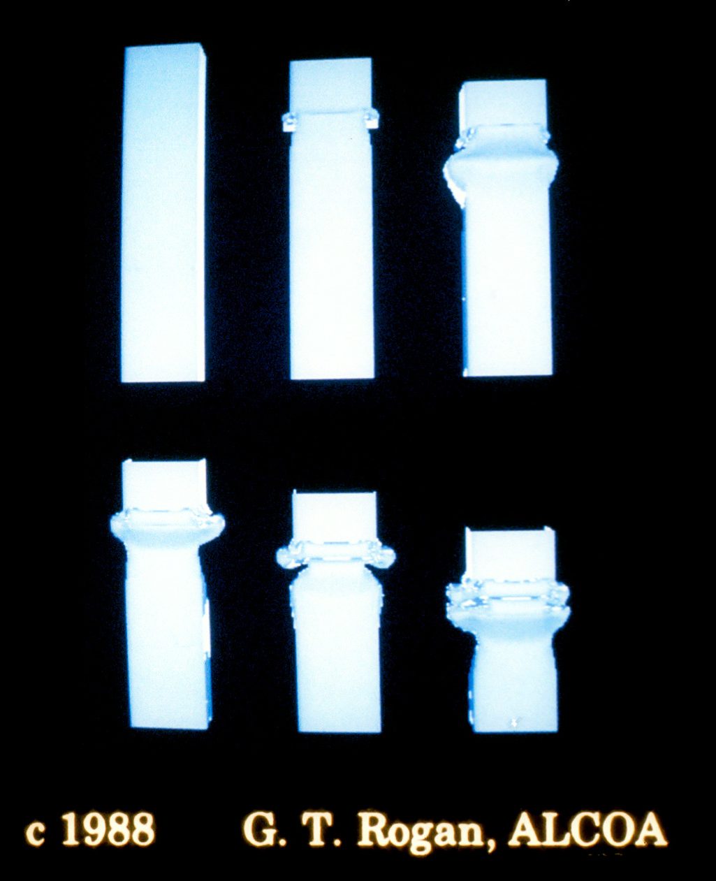 - Aluminum Channel Buckeling by G. T. Rogan using ScriptoDyana on a micro VAX with an Adage 3006 display. Buckeling deformation calculated by Dyana and dis played using Scripto. Contact: G.T. Rogan, ALCOA Technical Center, ALCOA Center, PA 15069, (412) 337-2366.?