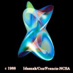 - Black Hole Space Times by David Hobill, Donna Cox, David Bernstein, Larry Smarr and Ray ldaszak. Numerical Relativity Code developed on CRAY X/ MP; visualization using wavefront. Alliant FX-8, Cray X/ MP. Embedding diagrams of a single Sch warzschild black hole obtained from a numerical solution of Einstein equations which describe the behavior of the gravitational field. The surface of the diagram measures the curvature of space due to the presence of a black hole while the color scale represents the speed at which idealized clocks measure time, i.e. red represents the slowest clocks, while blue represents the faster clocks. Contact: David Ho bill, Donna Cox, David Bernstein, Larry Smarr and Ray ldaszak, National Center for Supercomputing Applications, 605 E. Springfield Ave., Champaign, IL 61820, (217) 244-0072.?