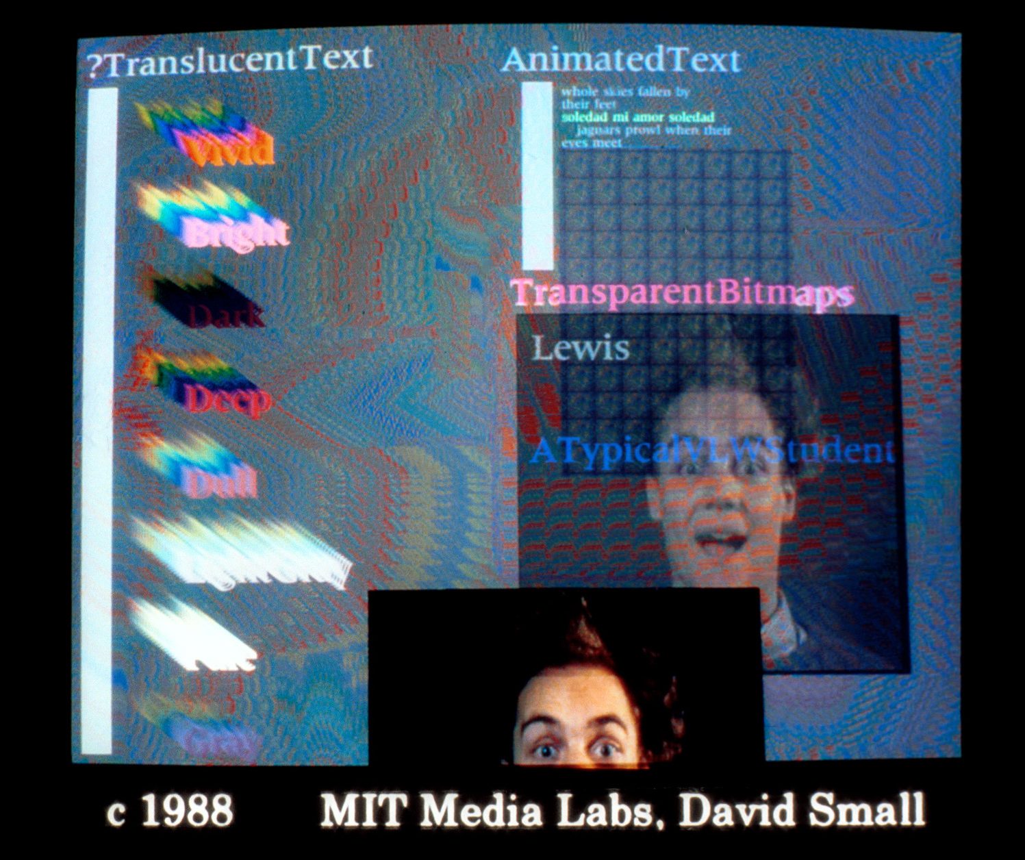 - Translucency by David Small using Transwrite with feedback by Russell Greenlee, VLW, on a Hewlett-Packard 9000 “Bobcat” workstation. Translucency is an important tool for the graphic designer. Contact: David Small, Visible Language Workshop, Media Lab, MIT, 20 Ames St., Room El5-443, Cambridge, MA 02139, (617)253-4416.?