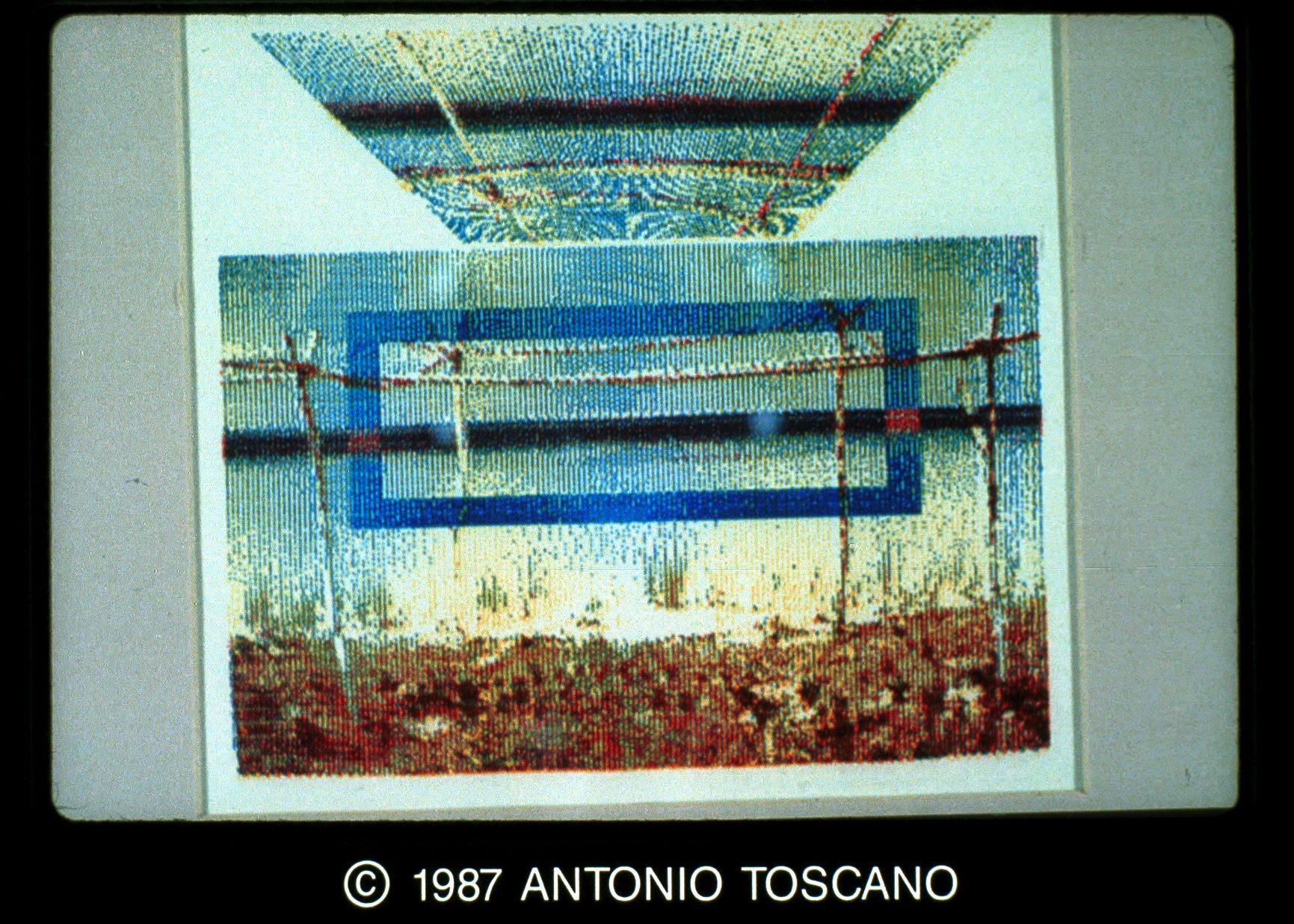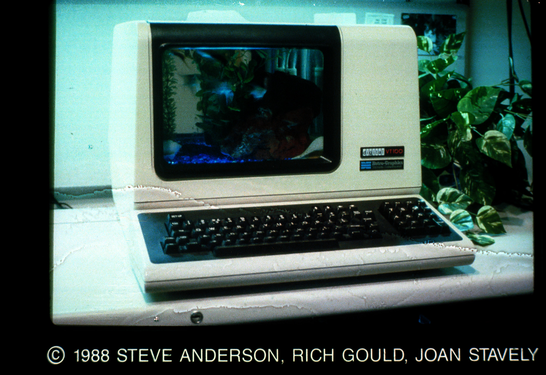 This slide set documents the works displayed at the SIGGRAPH “89 art show. Each slide is printed here in black and white to facilitate locating information about the images. The full color, 35mm slide set can be ordered from ACM order department, P.O. Box 64145, Baltimore, MD 21264, 1-800-342-6626. The ACM order number for the SIGGRAPH ’89 art show slide sets is 915891. The cost is $33 for members; $44 for non-members. I. Steve Anderson, Ohio Super- computer Graphics Project, 1224 Kinnear Rd., Columbus, OH 43212; Folk Art Fish Tank; sculpture using broken computer terminal, 24 x 24 x 36 in. Collaborators: Rich Gould, Joan Stavely.