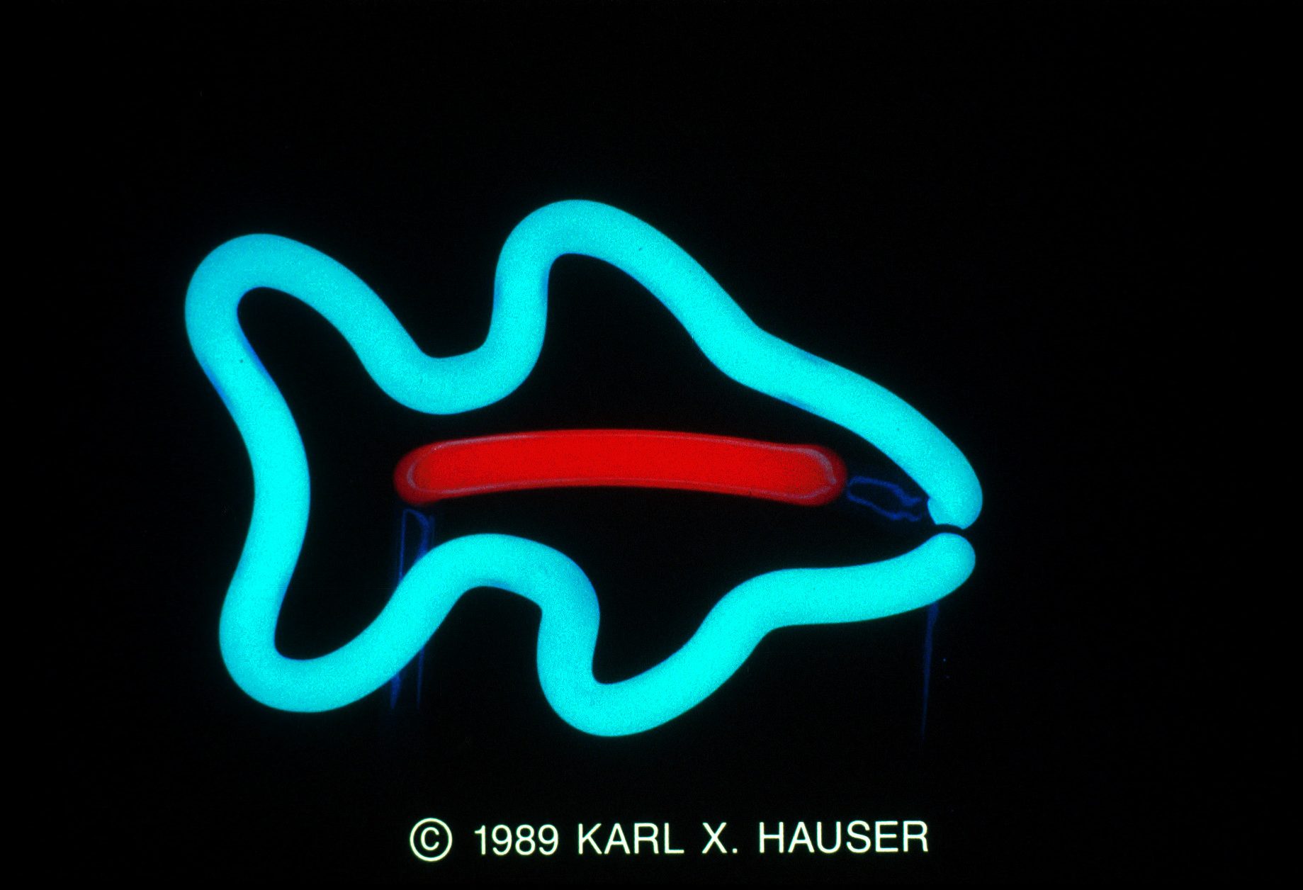 21. Karl X. Hauser, I 093 Dolores #4, San Francisco, CA 94110; wall-o- fish (detail); computer-animated neon, 60 x 84 in.