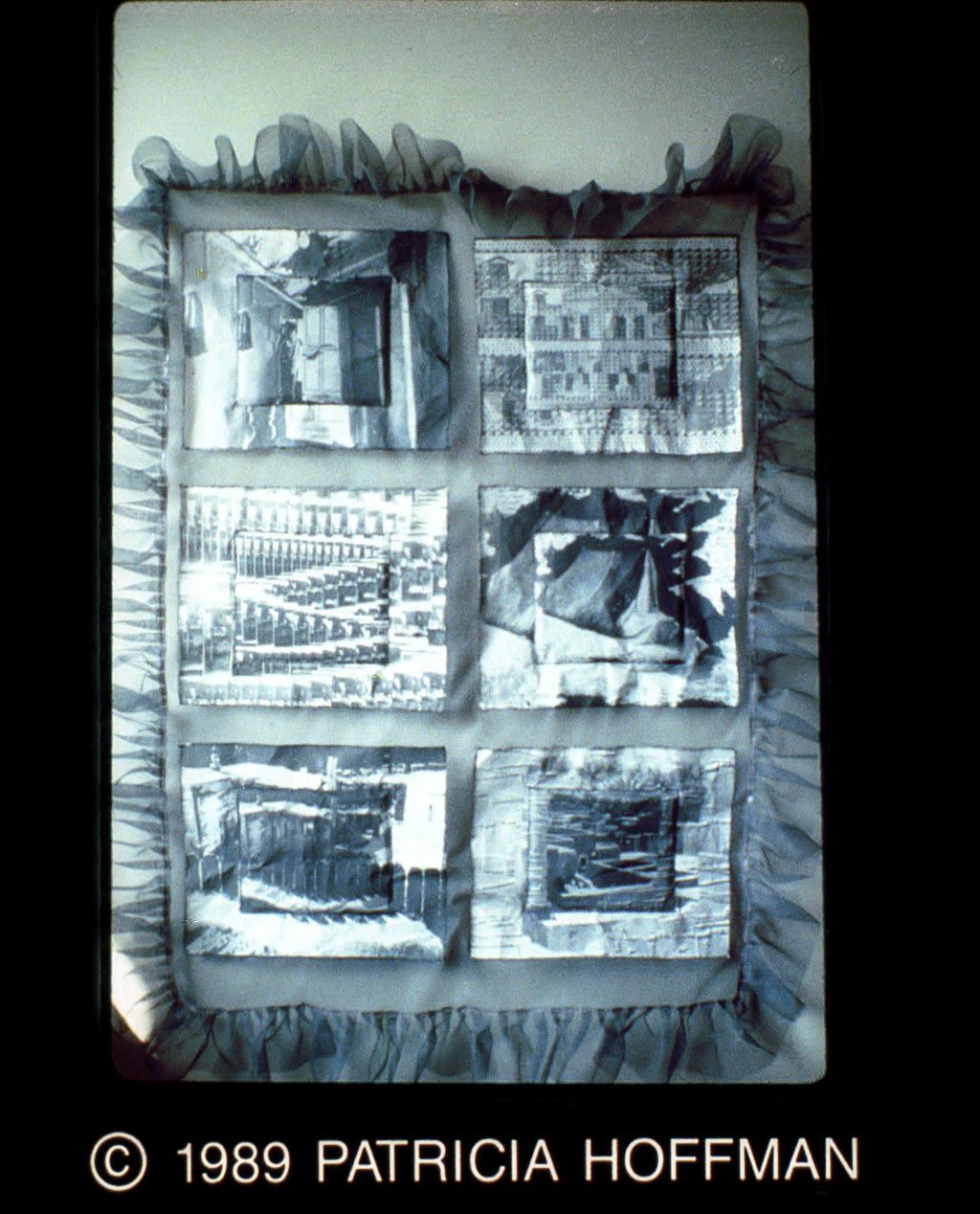 28. Patricia Hoffman, 124 West 60th St. #14E, New York, NY 10023; Home Sweet Home Quilt; photo on linen, mixed media, 60 x 46 in.