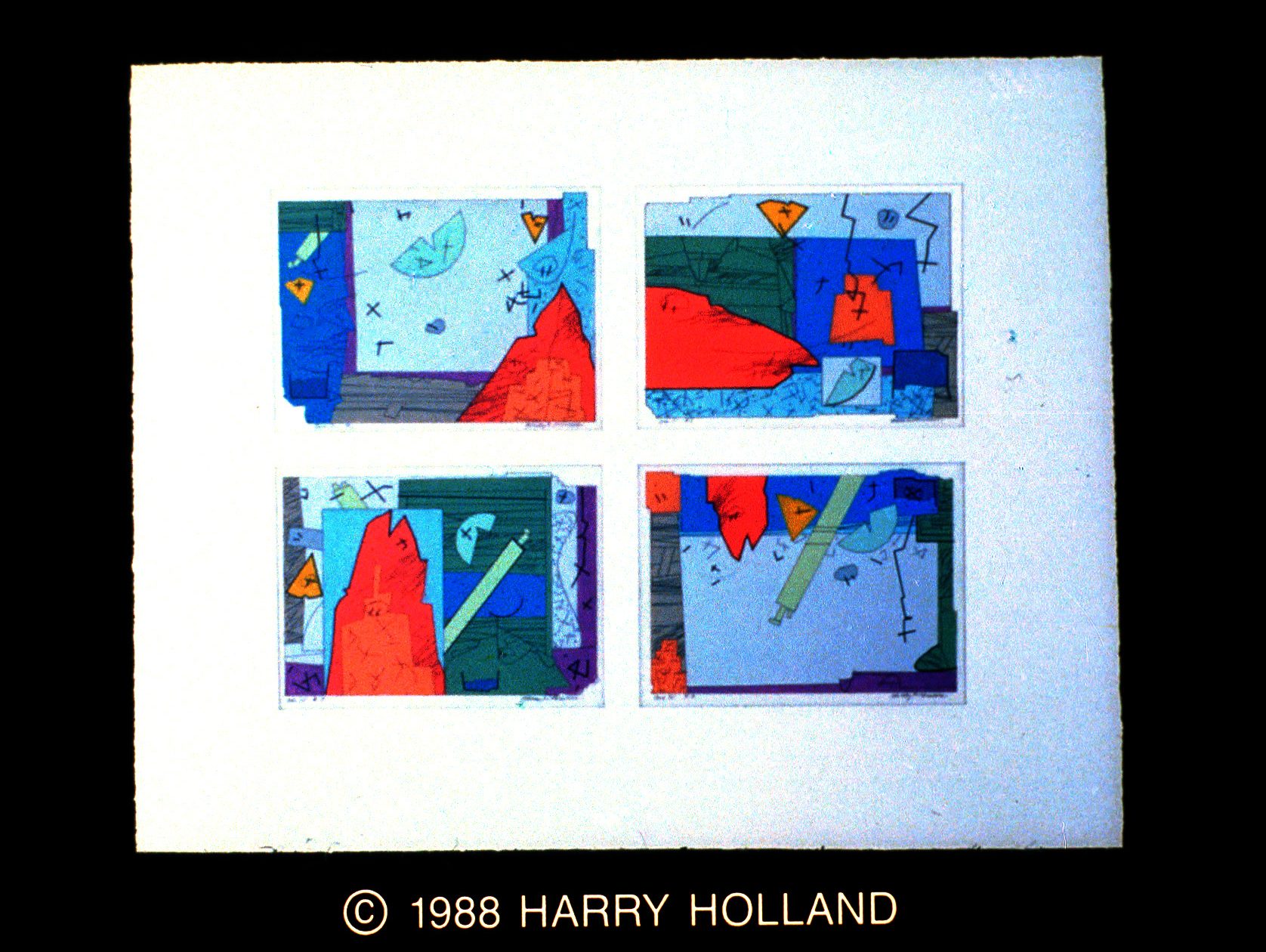 29. Harry Holland, Art Dept., Carnegie Mellon University, Schenley Park, Pittsburgh, PA 15213; Box 71 Series (#6, #7, #8, #9); acrylic and ink on acetate, 26 X 30 in.