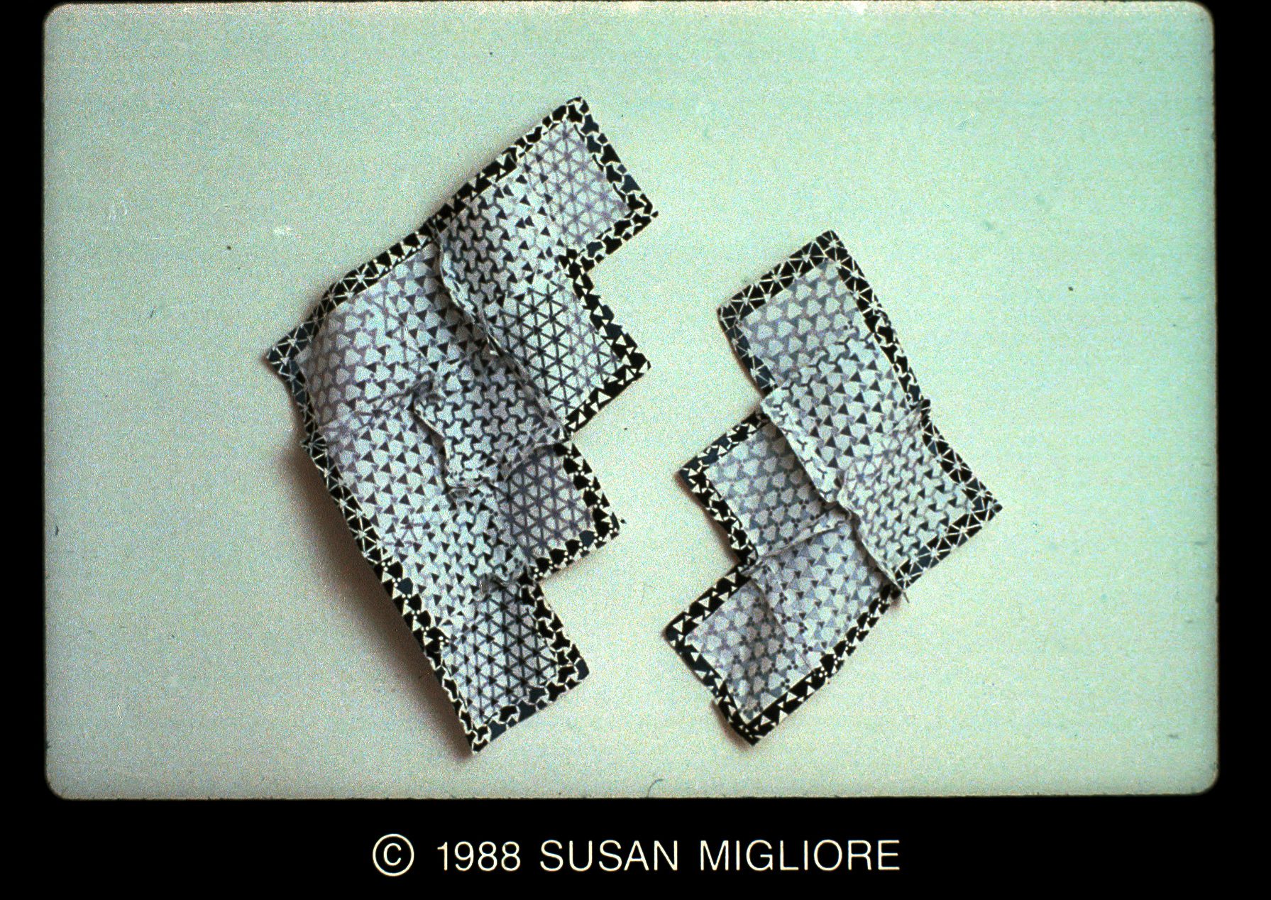 46. Susan Migliore, 1589 Caribbean Way, Laguna Beach, CA 92651; Two Triangles; fabric construction, 24 x 24 x 36 in and 18 x 18 x 24 in. (two pieces).