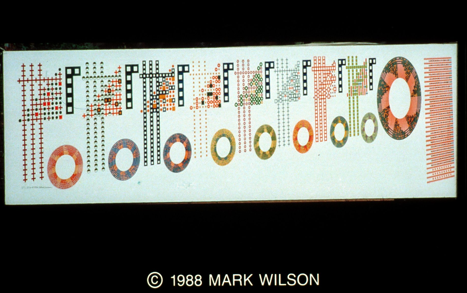 76. Mark Wilson, P.O. Box 23, 18 River Road, West Cornwall, CT 06796; STL D26; acrylic on canvas, 40 X 120 in.