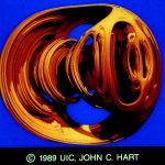 55&56. Quaternion Julia Set by John C. Hart. The stereo pair was made using proprietary ray-tracing software on a 64-processor AT&T Pixel Machine. This is a quaternion Julia set defined by the mapping z>z2 +0.2809+0.53i after a rotation of 60 degrees in the complex plane. Contact: John C. Hart, Electronic Visualization Laboratory, University of Illinois at Chicago, Box 4348 M/C 154, Chicago, IL 60680, (312) 996-3002.?