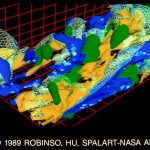35&36. ER2 over a Turbulent Landscape by S. K. Robinson, B. Murtha, K. C. Hu and P. R. Spalart. NASA Earth Resources Survey Aircraft (ER2) flies over a landscape created from the surface pressure field of a numerically simulated turbulent boundary layer. The ER2 by S. K. Robinson and B. Murtha, the stereo software by K. C. Hu and the simulation was performed by P. R. Spalart. Hardware used included a Silicon Graphics Iris workstation and Dunn camera. Contact: Stephen K. Robinson, MS 229-1, NASA Ames Research Center, Moffett Field, CA 94035, (415) 694-6220.?