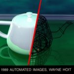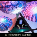 1. Newell’s Nightmare by Wayne E. Hoit. The work was created on the “ELECTROGIG II” 3-D print and animation system by Automated Images. Tbe objects were created using solid geometry and the image was ray traced. Hardware used was a Silicon Graphics personal Iris and photographed on a Matrix QCR-Z. Contact: Wayne E. Hoit, Automated Images U.S.A., Incorporated, 2030 M St. NW, Suite 703, Washington, D.C. 20036, (202) 331-1628, (202) 331-1723 FAX.