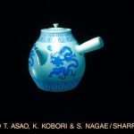 5. Teapot with Dragon Texture by T. Asai, K. Kobori and S. Nagae. The image was made with in-house software running on the IX-7 (32 bits EWS) coupled with a 24 bit frame buffer. The Oriental teapot model was constructed by revolution sur- faces and Coons surfaces, and converted to triangle polygons for rendering. The textures (dragon, arabesque pattern, etc.) were hand made using software painting capabilities. Contact: T. Asai and K. Kobori, Computer Systems Laboratories in Engineering Center, Sharp Corporation, 2613-1 Ichinomoto-cho, Tenri 632, Japan, 7436-5-1321; S. Nagae, University of Osaka Prefecture, 4-cho_ Mozu, Umemachi, Sakai 591, Japan, 0722-52-1161.