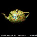 8. Recursion with a Teapot by Stephen C. Maddock. Mip-mapping is employed while recursively wrap- ping teapots onto the patches of other teapots. The image was generated using in-house software on an RM Nimbus PC with an Ikon 24-bit pixel engine (frame buffer). Contact: Stephen C. Maddock, Department of Computer Science, Sheffield University, Portobello Centre, Pitt Street, Sheffield, SI 4DD U.K.