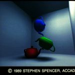 13. Radiosi-tea #2 by Stephen Spencer. The environment was created in “chalk,” an environment creation and animation system writ- ten by John Donkin of the Advanced Computing Center for the Arts and Design. The environment was cal- culated and rendered using software running on the Ohio Supercomputer Center’s Cray X/MP supercomputer and.a Sun 3/60 workstation. Thanks to Jeff Light of ACCAD for the slides. Contact: Stephen Noel Spencer, ACCAD, The Ohio State University, 1224 Kinnear Road, Columbus, OH 43212, (614) 292-3416.