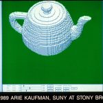 14. Voxel Teapot by Arie Kaufman. The display program was written by Kaufman and Li using SunCore and CUBE architecture software on Sun 3 and Sun 4 workstations. The Newell teapot was generated from 32 Bezier surfaces into a 643 cubic frame buffer of voxels. Contact: Arie E. Kaufman, Department of Computer Science, SUNY at Stony Brook, Stony Brook, NY 11794-4400.