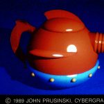 25. Teapots by Massimo Ontani. The image is a study in three- dimensional modeling. The model was built with Crystall 30 and then deformed using software written for that purpose. Contact: T. Redaelli Spreafico, RGB Computer Graphics ervice, s.r.l., V.le Piave, 17 – 20129 Milano, Italy, 02/783992, 02/783325 FAX.