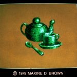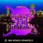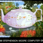 19. Tea Time ’79 by Maxine D. Brown. The image was created in 1979 using an in-house paint system on a developmental HP 26xx color graphics terminal at Hewlett- Packard, Data Terminals Division, Cupertino, CA. The paint system was initially written as a tool to help the engineers designing the color monitor to quickly put colors on the screen, but the allure of an electronic palette was too much to pass up. What better subject to draw when giving demos to HP management than the classic teapot? (Besides, mandrills are too hard!) Contact: Maxine D. Brown, Electronic Visualization Laboratory, University of Illinois at Chicago, Box 4348 M/C 154, Chicago, IL 60680, (3 I 2) 996-3002.