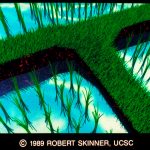 47. Reflections of Indonesia by Robert Skinner and Cathy Hirata Skinner. The image was created using a particle system generator and renderer on a Silicon Graphics Iris 4D/50G T connected to a Dunn camera. A particle system was procedurally grown for the grass, rice shoots and reflections, then rendered using an A-buffer algorithm. Contact: Robert Skinner, 225 Applied Science, University of California, Santa Cruz, CA 95064.