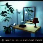 52. Specular Hevea-2 by Francois Sill ion. This image was created with the Light Interreflection Calculation System, a combination of ray tracing and radiosity. The software was running on an HP835/5RX and a Bull DPX 5000. The Hevea Tree database is courtesy of AMAP. This is a demonstration of a global rendering system, modeling specular and diffuse reflection. Contact: Francois Sillion, Liens-CNRS, 45 rue D’Ulm, 75005 Paris, France, (33) 1-43265996.