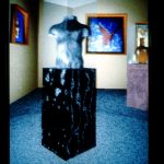 54. Art Gallery 1 by David S. Ebert. This scene features solid texturing of the walls, floor, marble torso and pedestals and wooden vases and picture frames. The pictures on the wall are prerendered scenes. The scene features 12 light sources. Torso data by Don Stredney. Texturing and rendering software by Ebert running on a HP9000/370 SRX. Contact: David S. Ebert, Ohio State University, Department of Computer Science, 2036 Niel Avenue, Columbus, OH 43210, (614) 292-6551.