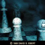 60. Once A-Pawn a Foggy Knight by David S. Ebert. This is a still from a film entitled Once A-Pawn a Foggy Knight. The slide features solid textured marble chess pieces and 2D textured eyes. The main feature of the slide is the animated swirling smoke simulation. Texturing and rendering software by David Ebert running on an HP9000/370 SRX. Contact: David S. Ebert, Ohio State University, Department of Computer Science, 2036 Niel A venue, Columbus, OH 43210, (614) 292-6551.
