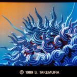64. Tentacles by Shinichi Takemura. This is an image of a creature living in somewhere in the cosmos which has alot of tentacles around its body. The image was made on an Epson 386 computer, Free-16 frame buffer and HC-1000 digital video copy with software by the author. Contact: Shinichi Takemura, Science University of Tokyo, 1-14-18, Gohongi, Meguro-Ku, Tokyo, 153, Japan, (03)-712-0856.