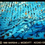 65. Triangle-wave by Marsha J. Mc- Devitt. The image was created using software developed at the Advanced Computing Center for the Arts and Design at the Ohio State University. Data generation software by John Donkin, Jeff Light, Steve Spencer and Marsha McDevitt. Scene description software by John Donkin. Rendering software by Scott Dyer. The hardware used included Sun 4/260 workstation, Parallex framebuffer, Barney digital scanner and Solitaire film recorder. Contact: Marsha J. McDevitt, ACCAD The Ohio State University, 1224 Kinnear Road, Columbus, OH 43212, (614) 292-3416.