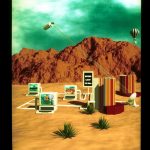 51&52. C rays in the Desert by Pete Watterberg, Estrella Dulleck, John Mareda, Debbie Campbell. Crays are interconnected to workstations in the desert, representative of Sandia’s computing enviro nment. Watter berg’s Mesa software was used.on a VAX 8600. Contact: John Mareda, Sandia National Laboratories, P.O. Box 5800, Div. 1523, Albuquerque, NM 87185, (505) 845-8550.