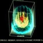 47&48. Iso-surfaces of Monte Carlo Data by Donna M. Ross, Francis’ X. Janucik, Timothy J. Patt. These images show iso-surfaces of constant power density from Monte Carlo solution of commercial nuclear reactor model. In-house software was used on a VAX 8800, Matrix Color Hardcopy. Contact: Donna M. Ross, Timothy J. Patt, GE – Knolls Atomic Power Laboratory, Room 103, Building C4, Box 1072, Schenectady, NY 1230 I, (518) 395-6648.