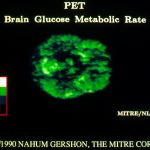 43&44. Brain Glucose Metabolic Rate O Degrees by Nahum D. Gershon. These renderings of brain glucose metabolic rate as depicted by PET on 14 slices with resolution of I 28 x 128 pixels were created on a PIXAR II. In-house software, ChapVolume, was used. Contact: Nahum Gershon, The Mitre Corporation, McLean, VA 22102-3481, (703) 883-7518.